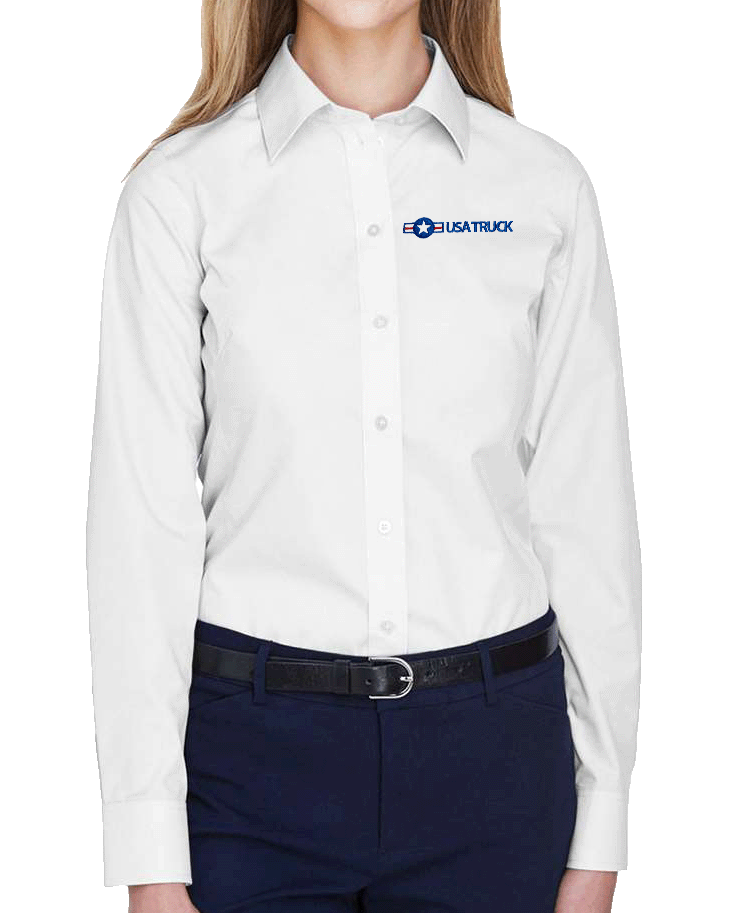 A polished, professional dress shirt designed for everyday wear. The smooth woven fabric resists wrinkles and stains, helping you look put-together with minimal effort. Tailored seams create a flattering fit while still staying comfortable throughout the day.